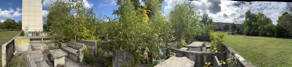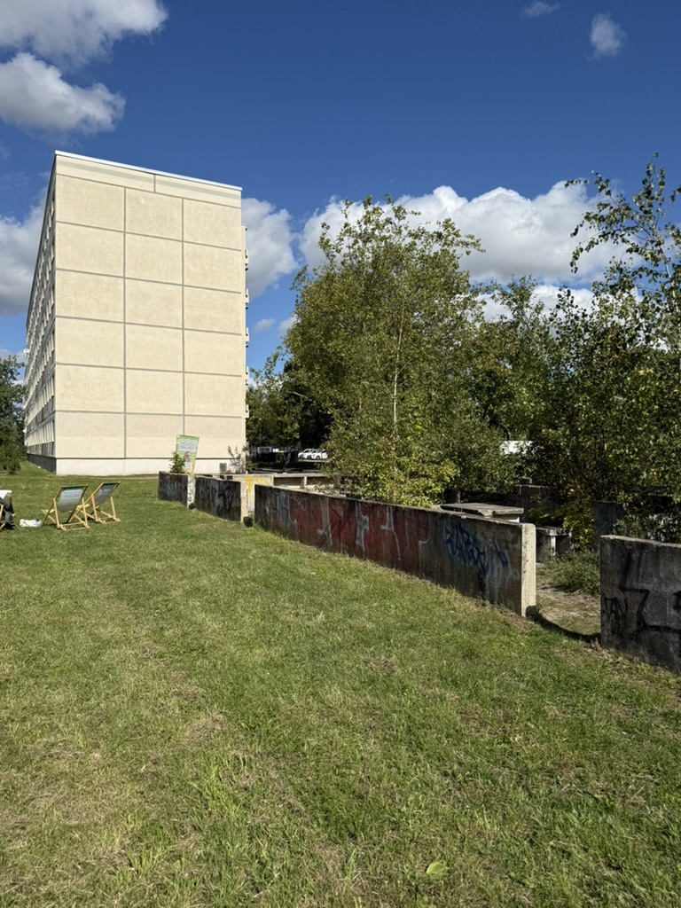 Grabungsstaedte „erzählt“ die Geschichte des industriellen Bauens des 20. Jhdt. und bewahrt sie in einer Zeitkapsel für spätere Befragungen. Das übergeordnete Jahresmotto des bundesweiten Tages des offenen Denkmals 2025 „Wert-voll: unbezahlbar oder unersetzlich?“ war Ausgangspunkt von Überlegungen zum Umgang mit dem Kulturerbe in Bezug auf Kunstwerke und Künstlernachlässe. Wie sieht die gegenwärtige Praxis dazu aus und was bedeutet es, dass die Praxis ist, wie sie ist. Was muss/soll sich ändern und warum das gut für alle wäre. Wie kann der Umgang mit Geschichte und dem damit in Verbindung gebrachtem Kulturerbe differenziert(er) und fundiert gelingen? Wie lässt sich die unmittelbare Vergangenheit erzählen? Diese Fragen diskutierten die zahlreichen Anwesenden – u.a. der Künstler Andreas Freyer, der Kommunikationsdesigner Lutz Grumbach, die Künstlerin der Grabungsstaedte Dagmar Schmidt – und berichteten von ihren Erfahrungen mit Kunstwerken, die Sanierungen weichen mussten, vom hohen Wert der Werkdatenbank Bildende Kunst Sachsen-Anhalt mit Werkübersichten von derzeit über 40 Künstler:innen und von Möglichkeiten des Umgangs mit Kunstwerken im Bestand und bei der Erstellung. Im Vordergrund des Interesses stand die Wertschätzung des kulturellen Erbes und viele Ideen, wie mit niedrigschwelliger Vermittlung Kunst in der Stadt weiter bekannt zu machen ist.